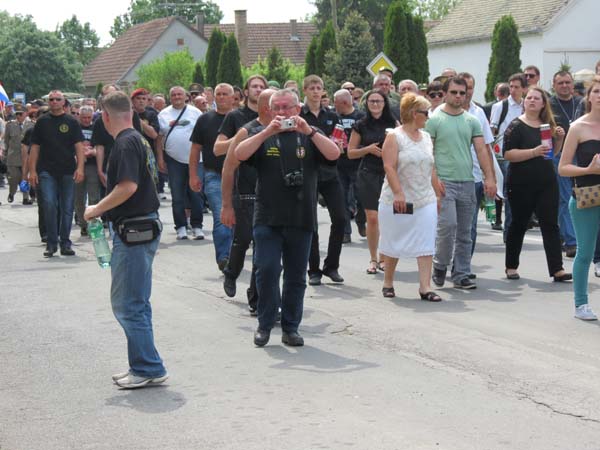 Nakon svete mise, koju je služio u vinkovačkoj župnoj crkvi svetih Euzebija i Poliona vojni ordinarij mons. Juraj Jezerinac, krenula je povorka automobila i autobusa sa predstavnicima Udruga proizašlih iz Domovinskog rata prema Borovu selu. U autobusima su bili roditelji, supruge, braća i djeca poginulih redarstvenika. Bili su tu i predstavnici Sabora i nekih hrvatskih stranaka. Njih nekoliko stotina. Svi su oni željeli, u znak protesta, odvojeno upriličiti komemoraciju, jer im Ministarstvo branitelja nije dozvolilo govoriti na prijepodnevnoj komemoraciji, koja je održana na istom mjestu u devet sati. Kolona je točno u 13 sati krenula sa stjegovima, od mjesta na ulazu u Borovo selo, gdje je zasađeno 12 čempresa u sjećanje na njih, prema spomen obilježju u središtu mjesta. Mimohod su čuvale jake snage MUP-a. Došavši do spomen obilježja sudionici su položili vijence i zapalili svijeće. Prije njih to su isto učinili i pripadnici biciklističke udruge iz Mostara i Slavonskog Broda, njih četrdesetak, koji su vozili tour od Mostara do Vukovara. Nakon polaganja vijenaca i paljenja svijeća započeli su govori. Najprije je govorio predsjednik Stožera za obranu hrvatskog Vukovara Tomislav Josić. On se u svom govoru zahvalio kardinalu Bozaniću za podršku "Ne ćirilici" i da Vukovar bude kao posebno mjesto izuzeto svakog politiziranja.