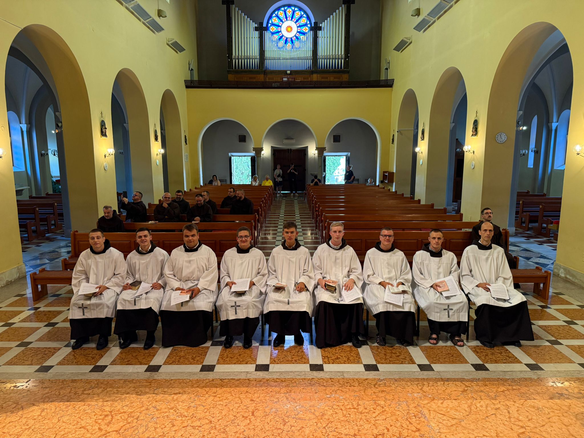 Dan je započeo zajedničkom jutarnjom molitvom i doručkom, nakon čega je uslijedio susret s provincijalnim ministrom fra Milanom Krištom i kustodom fra Tomislavom Šankom. Nakon kratkog razgovora i ohrabrenja, postulanti su u crkvi imali generalnu probu obreda primanja. Uslijedile su posljednje pripreme i trenutak iščekivanja koji su pratili trema i vrućina. Obred primanja predvodio je provincijalni ministar fra Milan Krišto. Sve je proteklo dostojanstveno i bez poteškoća, na čemu prisutni zahvaljuju Bogu. Obred primanja u postulaturu završio je molitvom srednjega časa te pokorničkim ručkom, s obzirom da nas je papa Lava XIV. Pozvao na post i molitvu za mir u svijetu.