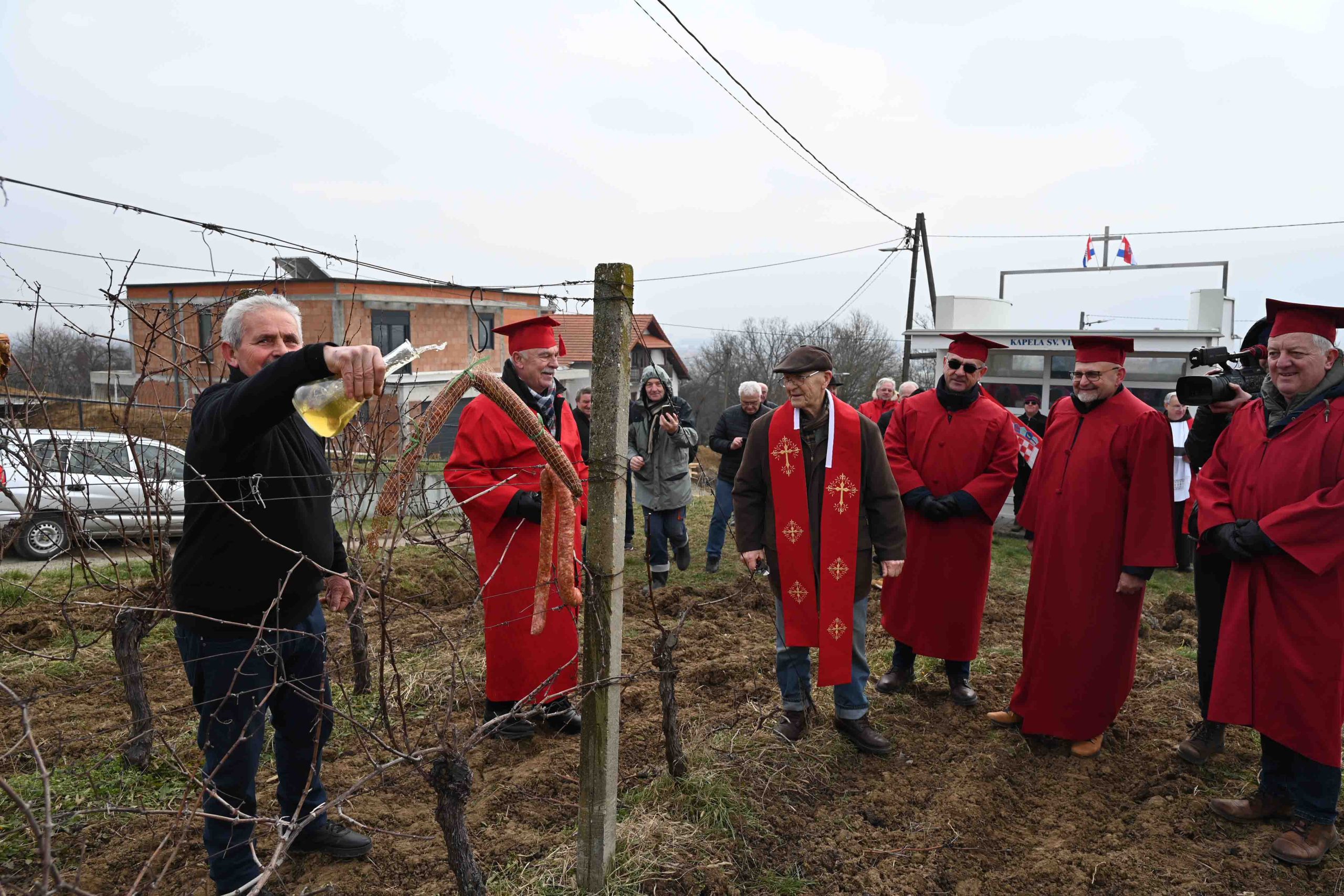 Kako je vino, uz kruh, inače prvo blagoslovno znamenje u Katoličkoj Crkvi, stoga je fra Domagoj Šimunović blagoslovio i vinom zalio trsove vinograda i rad ruku čovjekovih u njima.