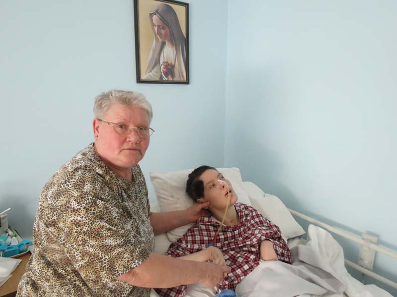 Nakon ovog uvodnog razgovora u kuhinji preselili smo se u Ivaninu spavaću sobu. Majka i kćerka razgovaraju samo gledajući jedna drugu u oči. Svi su joj drugi dijelovi tijela oduzeti. To se u stručnoj medicini zove "vigilna koma!" objašnjava mi majka Manda i nastavlja: Ivana jedino očima izražava svoje unutrašnje raspoloženje. Nešto mi je sad tužna, prevodi mi majka Manda, Ivanino trenutno raspoloženje. Toliko sam kroz praksu stekla iskustva da sam uvjerena da svaku bol, ali i svaku radost moje Ivane mogu razumjeti. Znam kad je gladna i kad je žedna. Kad nam je teško onda se zajedno isplačemo pa nam bude lakše. Svako malo hranim je preko sonde jer mi se negdje skoro bila skoro ugušila dok sam joj davala malo tvrđu hranu. Sama ne znam koliko se puta noću probudim da je obiđem i vidim je li sve u redu. To može samo rođena majka. Zdravlje joj ne mogu povratiti, govori nam majka Manda kroz ponovne suze, ali joj majčinske ljubavi ne nedostaje. Ivana joj za toliku ljubav svaki put uzvraća veselim pogledom.